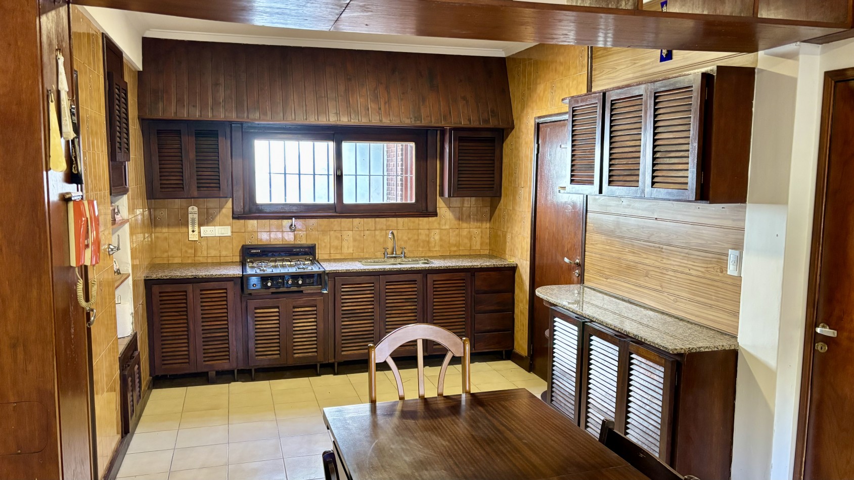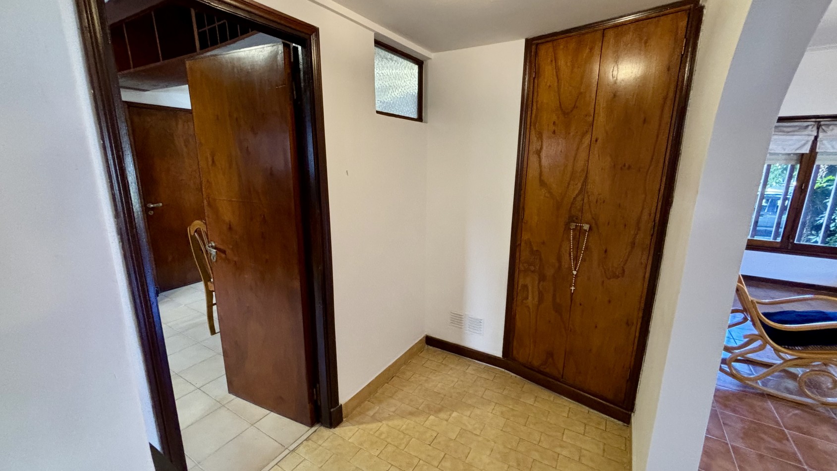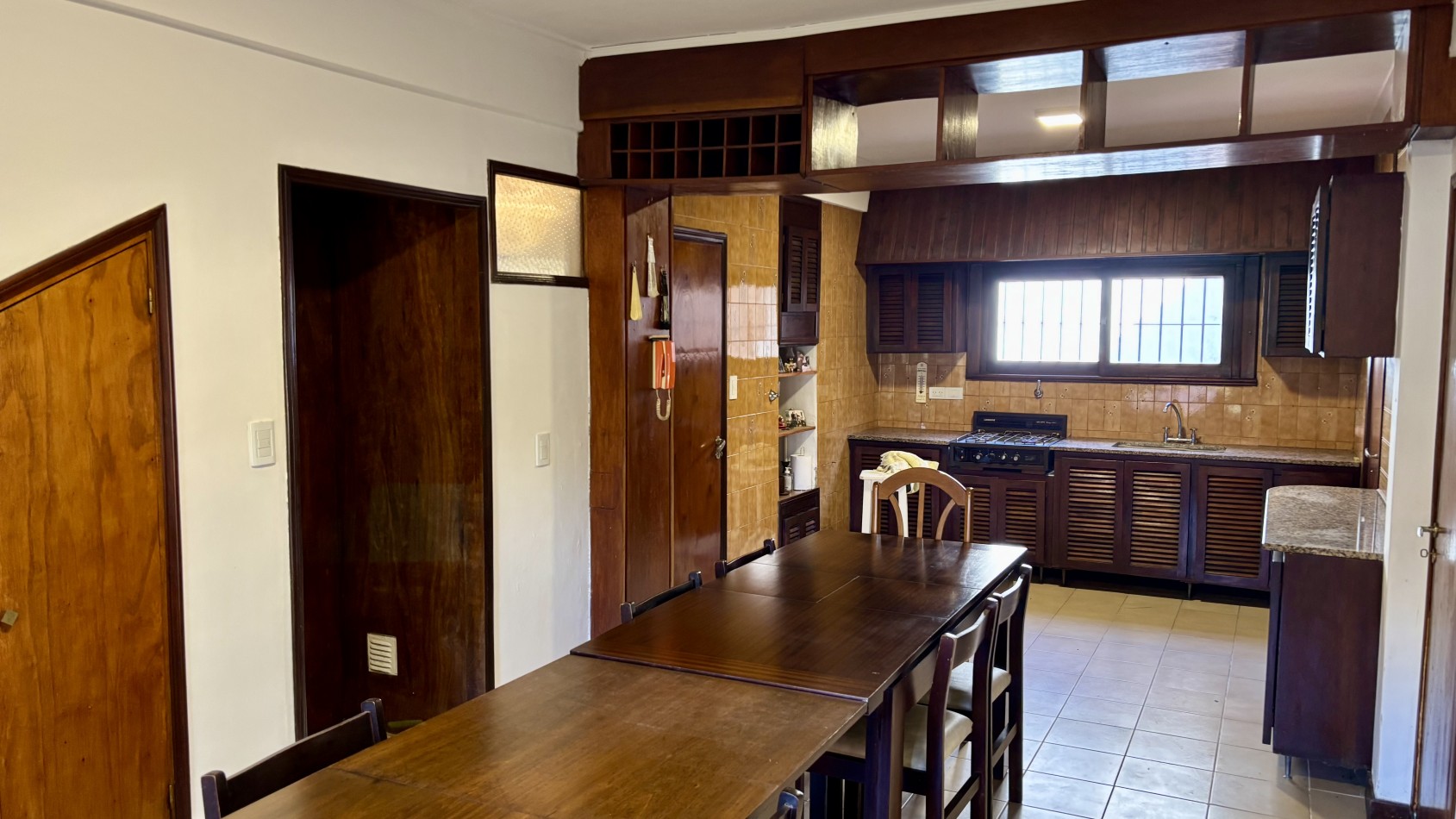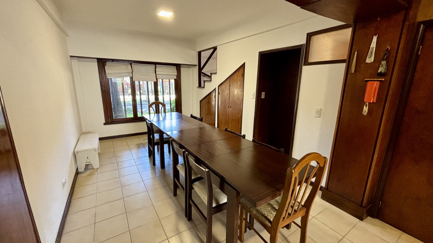 Casa de dos plantas en Parque Luro con 217 m² totales y tres espacios al aire libre independientes: garaje cubierto de gran porte con parrilla incorporada (adaptable a quincho), terraza en planta alta y patio interior privado con espacio para vehículo adicional o guardado.