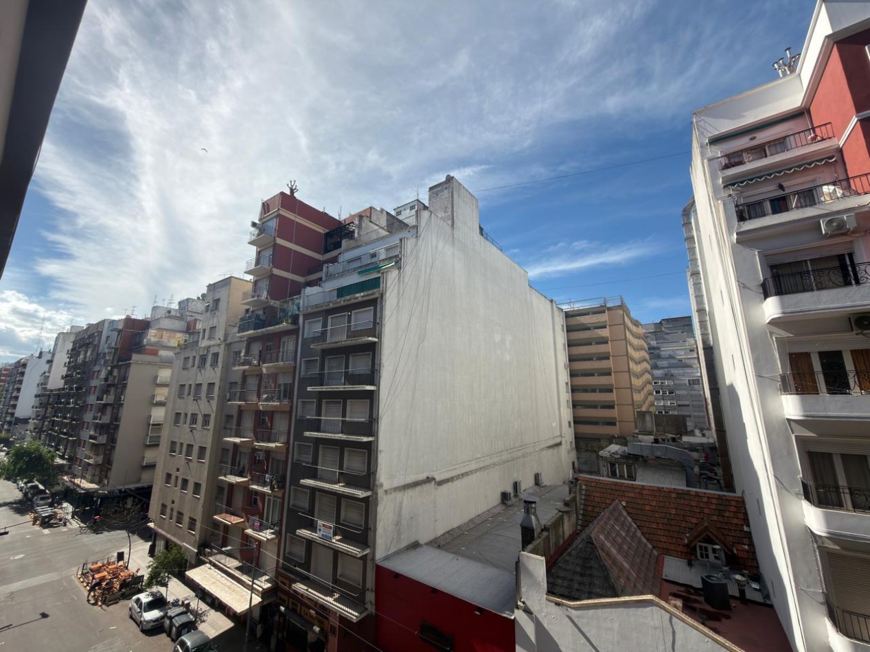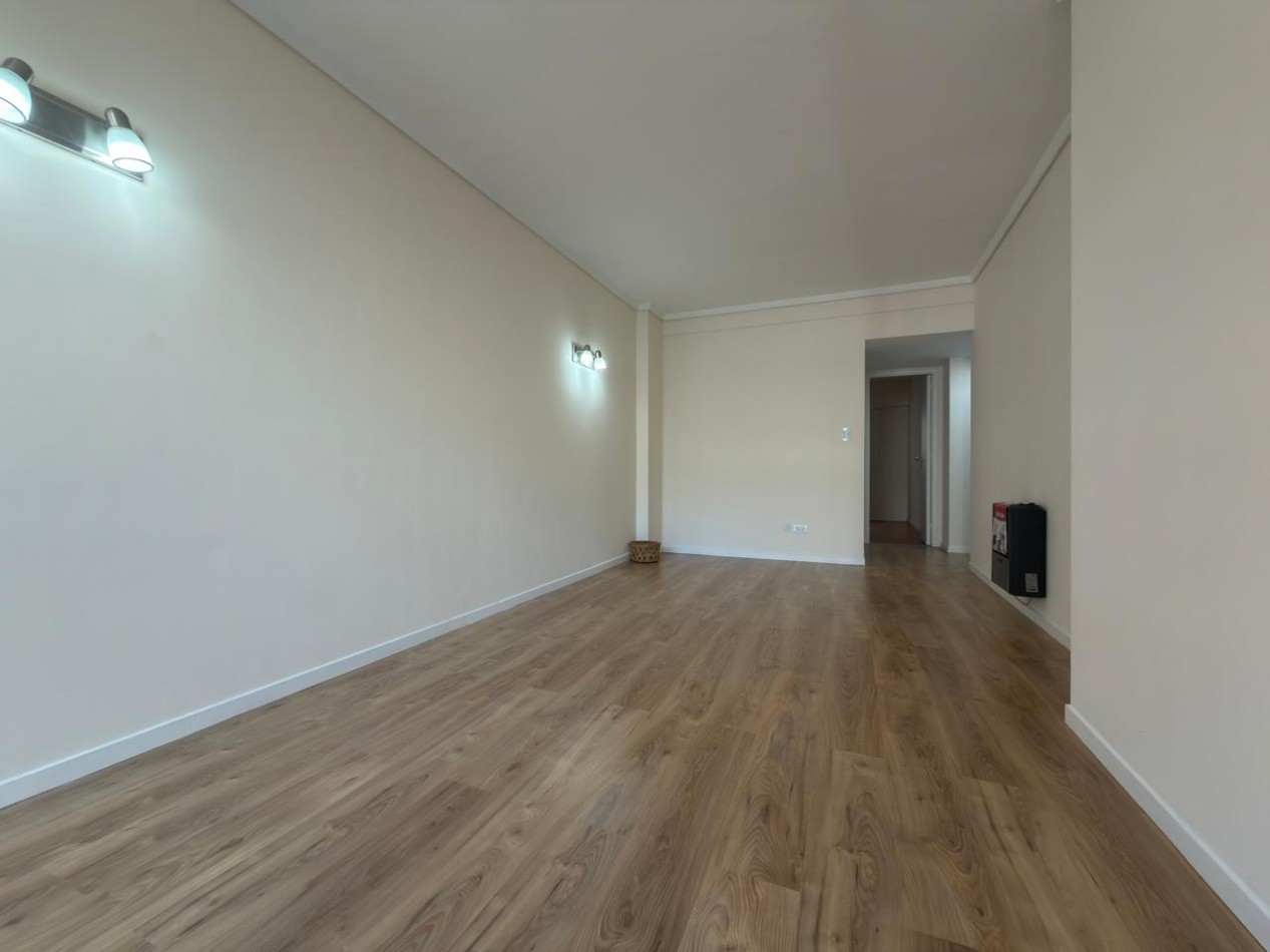 Departamento de 60 m² ubicado al frente, con balcón saliente y muy buena luminosidad. Cuenta con living amplio con salida al balcón, dormitorio al contrafrente con placard, cocina comedor, dos baños y dependencia de servicio espaciosa. Posee lavadero cubierto con ventilación natural y espacio para lavarropas.