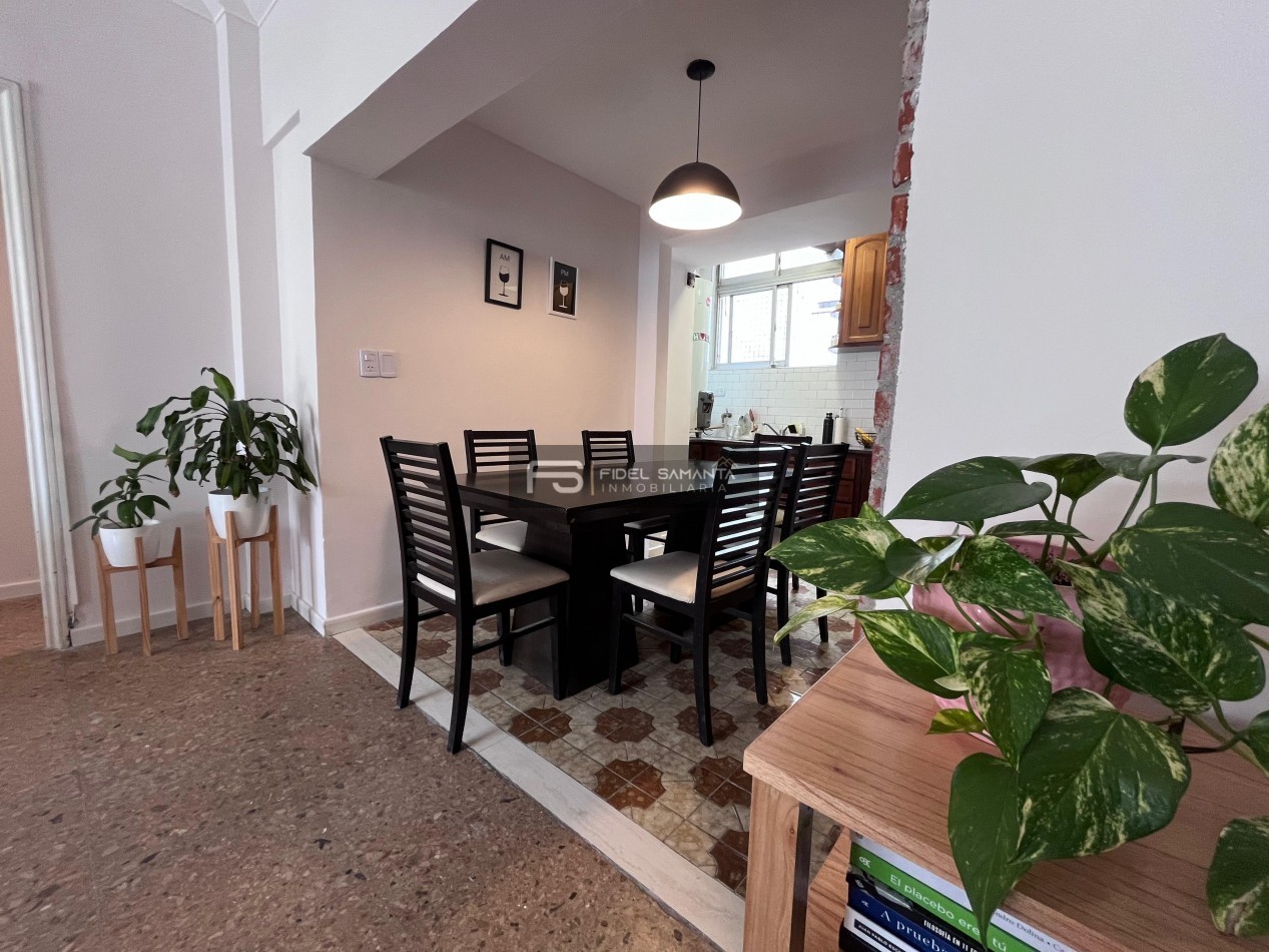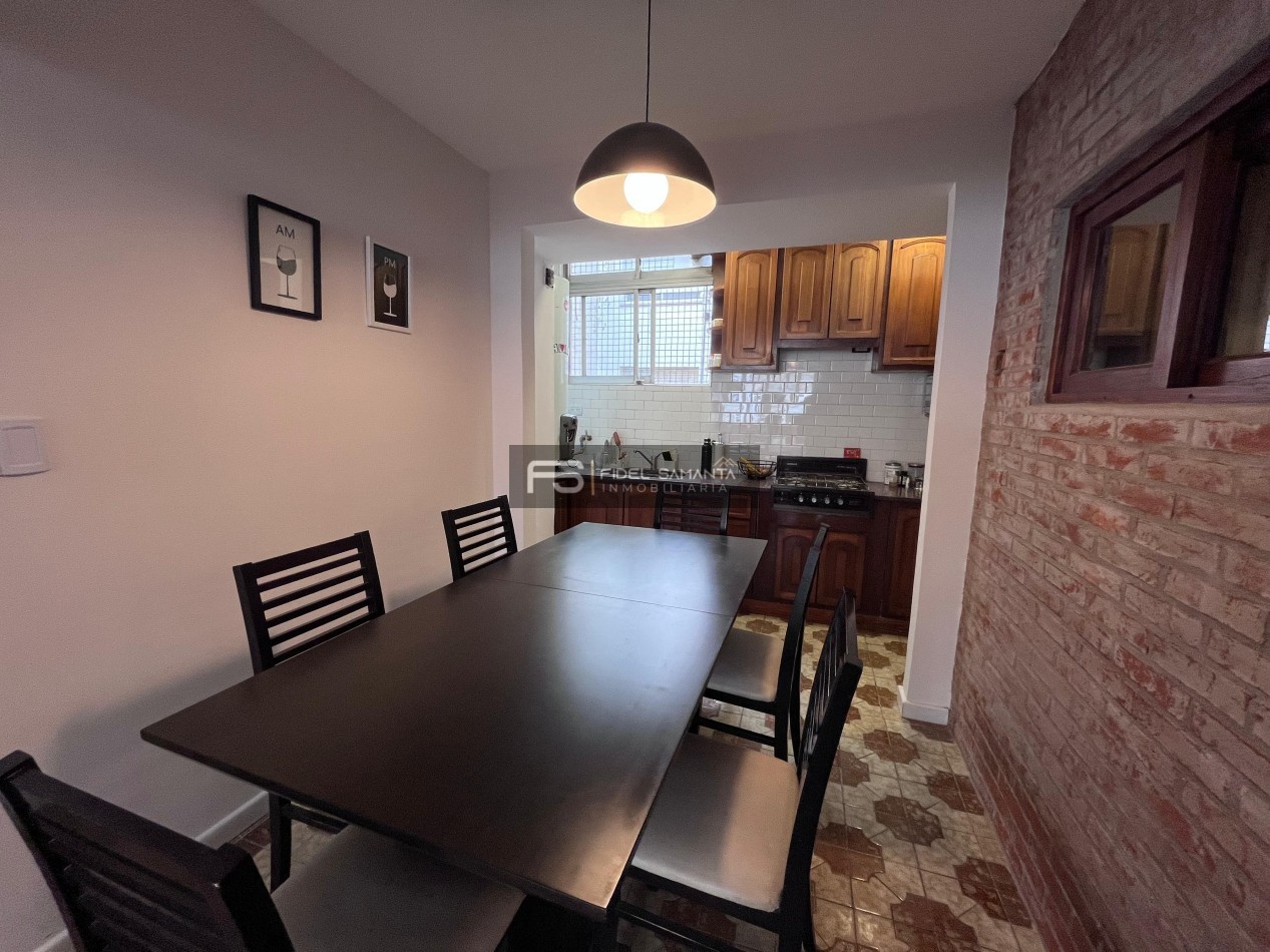 Dispone de cocina integrada con espacio de comedor diario, lavadero independiente y toilette de recepción. El sector privado ofrece dos dormitorios bien distribuidos (uno al frente y otro al contrafrente), junto a un baño completo reciclado.