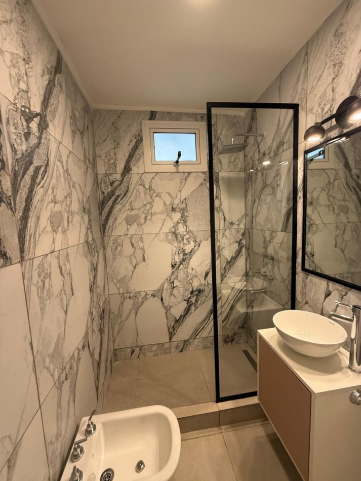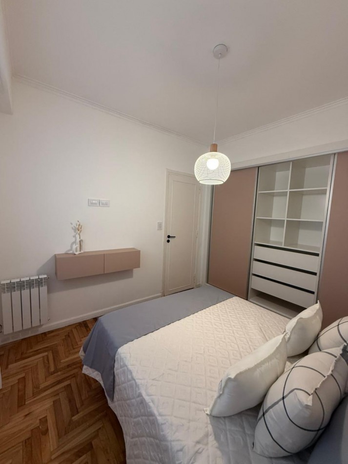 El sector privado ofrece un dormitorio principal de generosas dimensiones con placard, un segundo dormitorio también con placard y un baño completo. La propiedad cuenta con calefacción por radiadores y se entrega totalmente amoblada y decorada, lista para habitar.