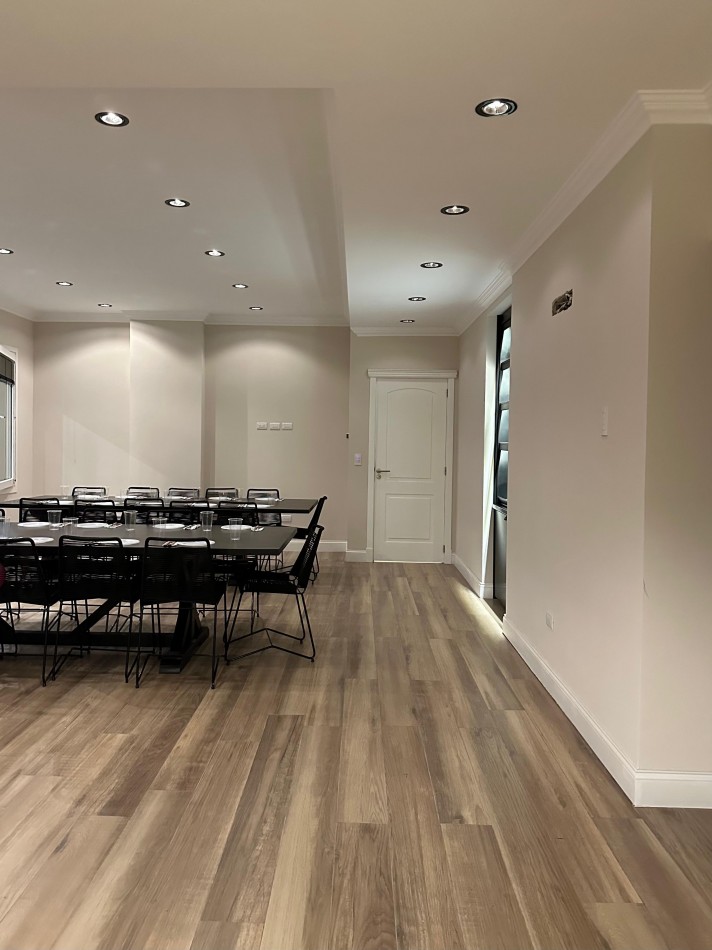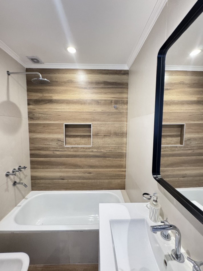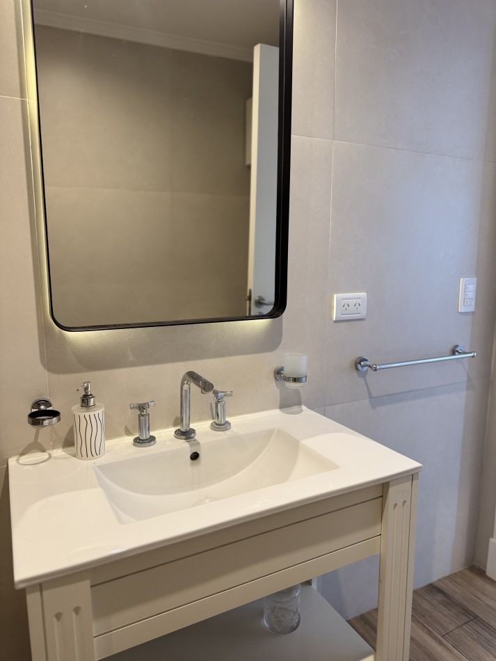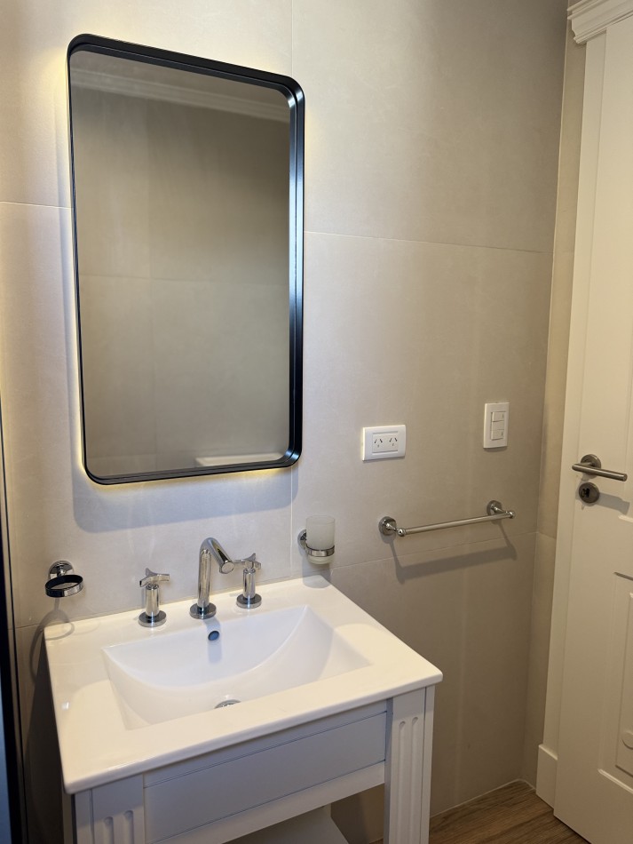 • Pisos de porcelanato importado símil madera, que aportan calidez y diseño.