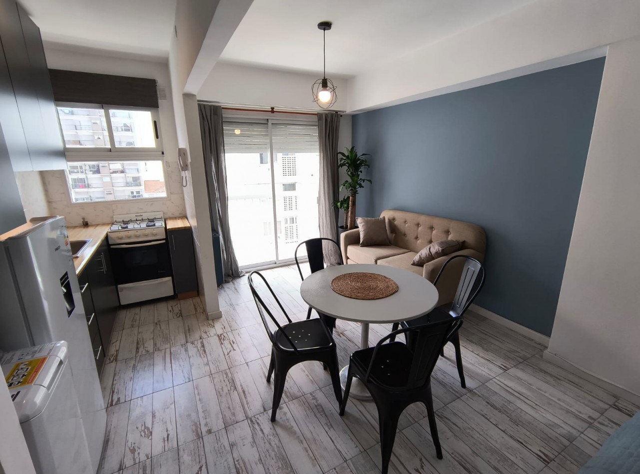 Dispone de cocina abierta con amoblamiento a medida, baño completo, balcón y calefactor TB.
