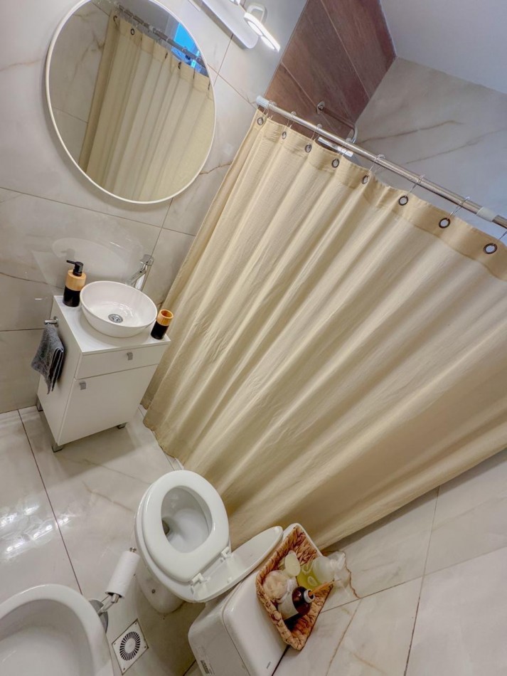 El baño completo fue reciclado, con terminaciones modernas. Además, la propiedad cuenta con aberturas DVH (doble vidrio hermético) y calefacción por tiro balanceado, asegurando eficiencia térmica y mayor confort.