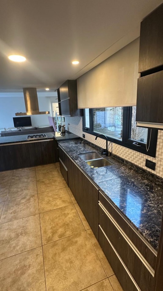 Al ingreso encontramos cómodo living con hogar y amplio comedor. Cocina integrada con isla.