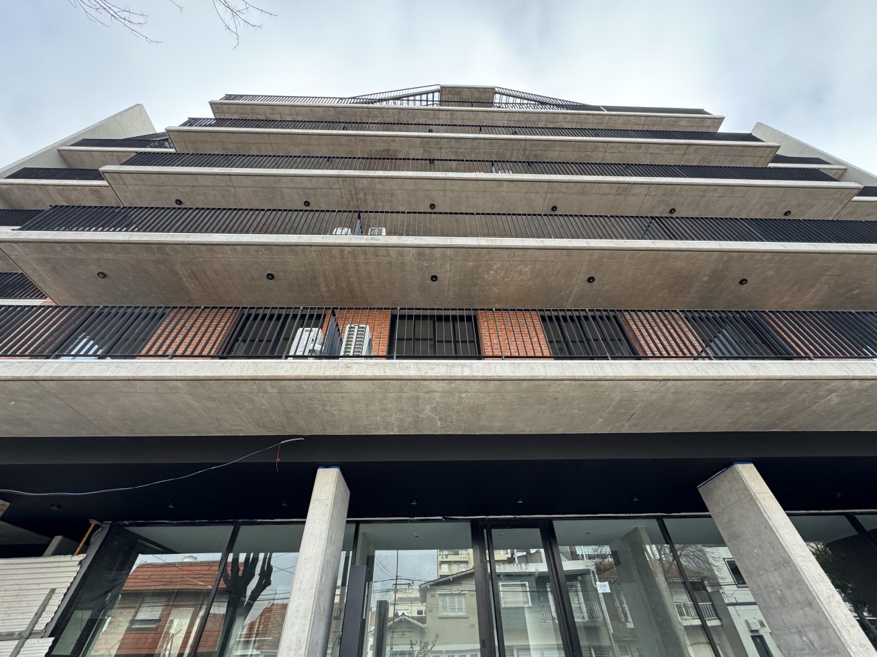 Su propuesta busca conectar la identidad autóctona del barrio con un diseño industrial único: fachada de ladrillo visto, cielorrasos y voladizos de hormigón, vidrio repartido y detalles de hierro con terminaciones artesanales.