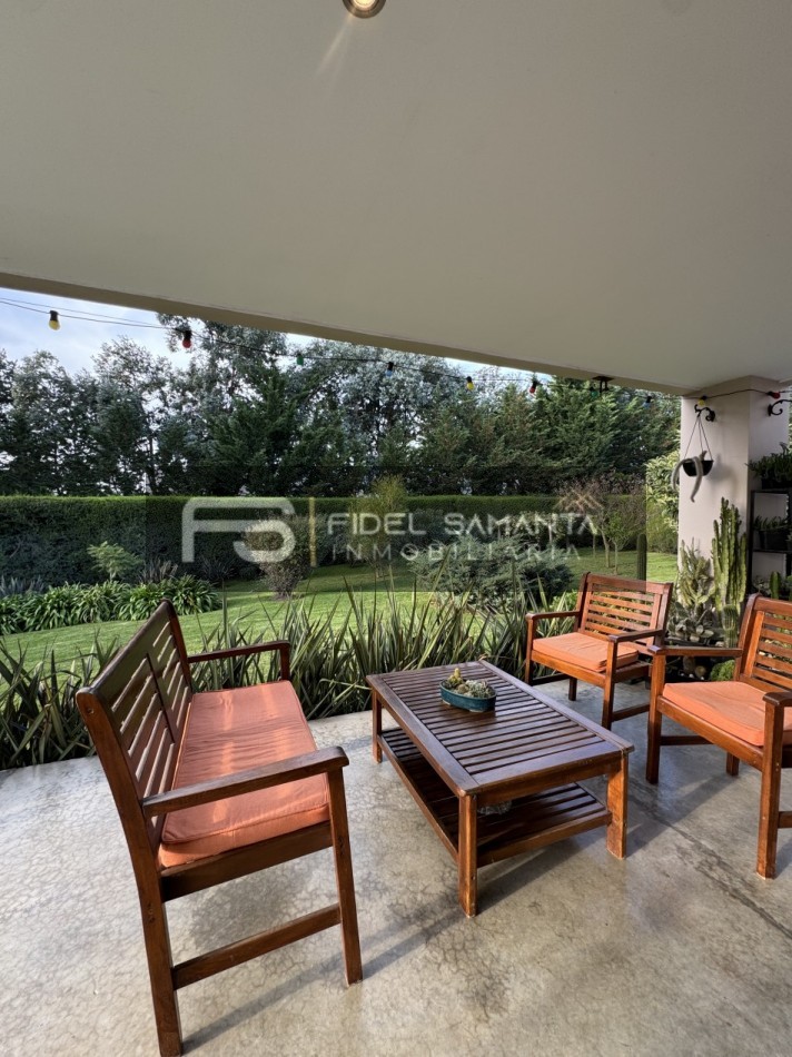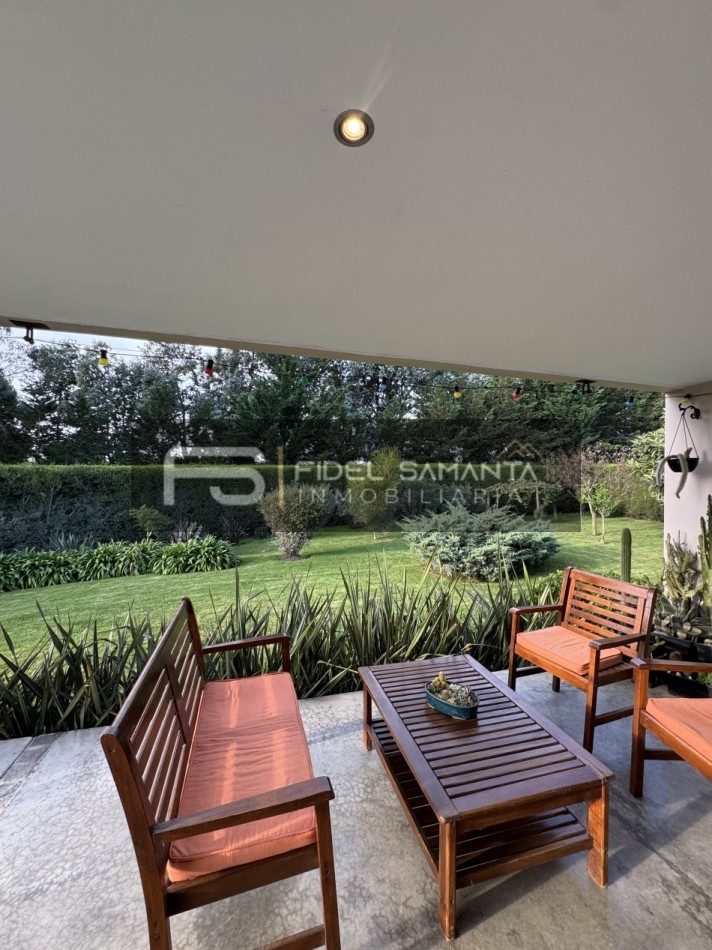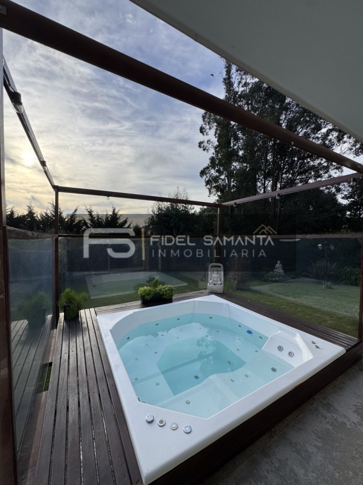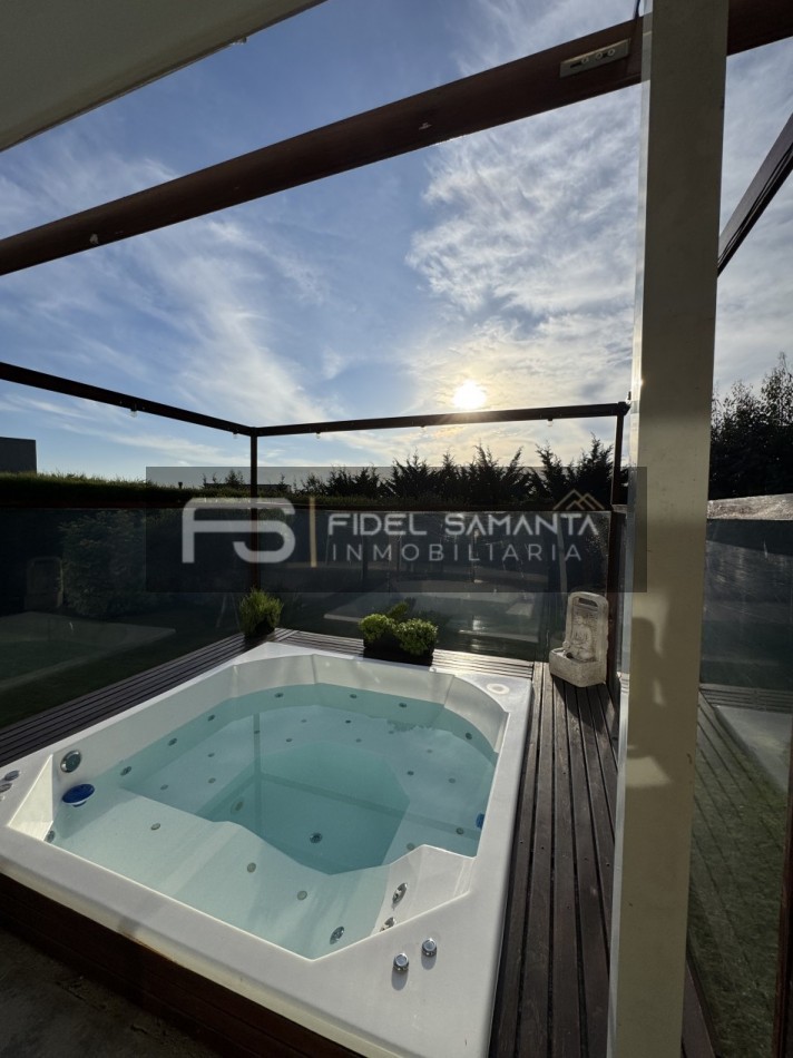 En el exterior, el jardín perimetral brinda privacidad absoluta, acompañado por galería, quincho con toilette y un jacuzzi exterior ideal para disfrutar durante todo el año.