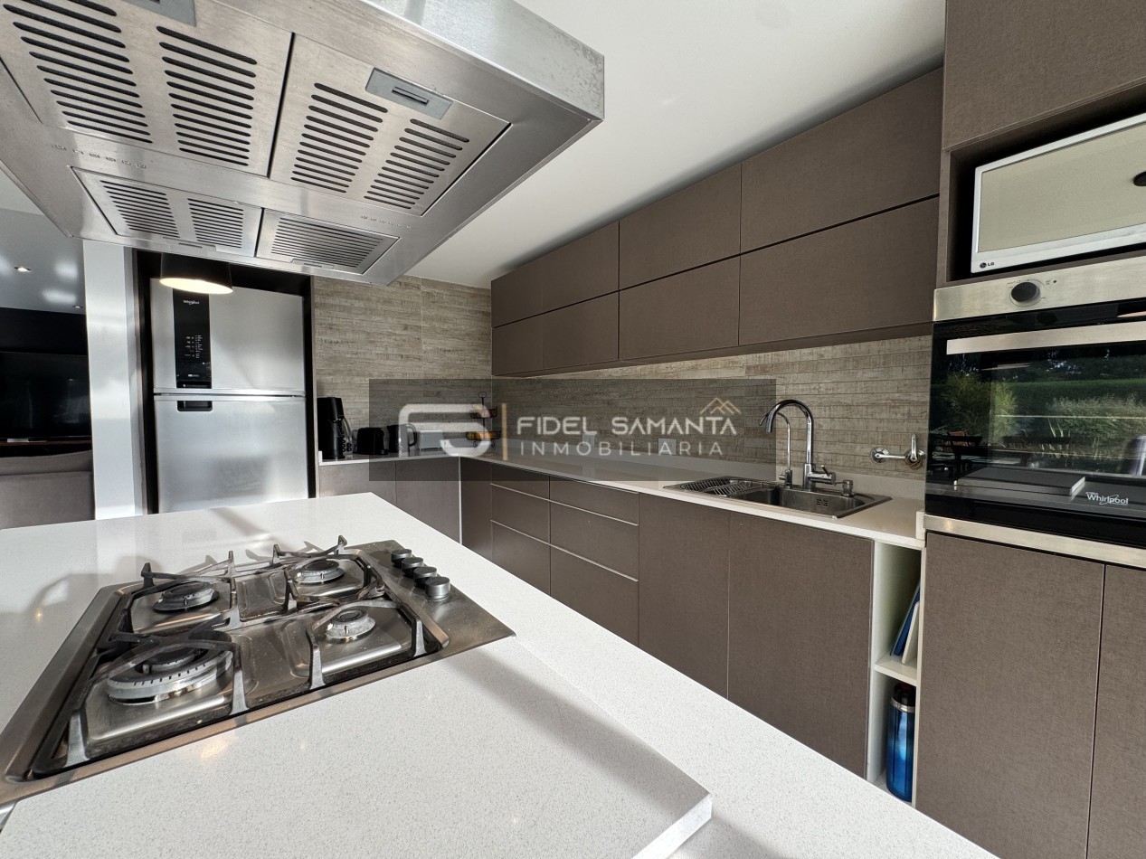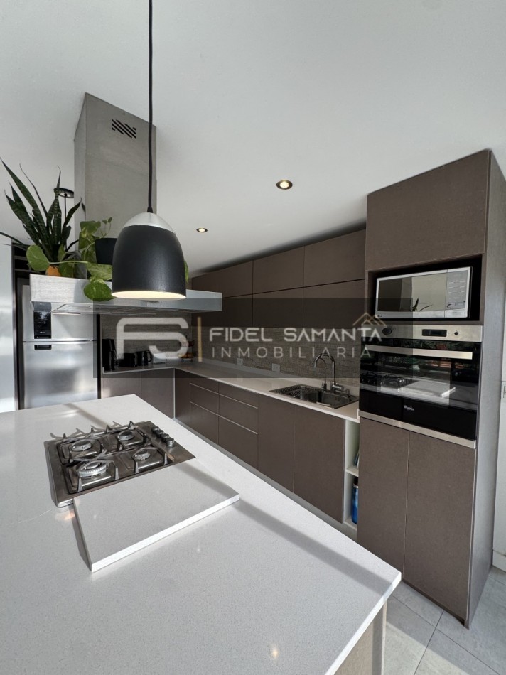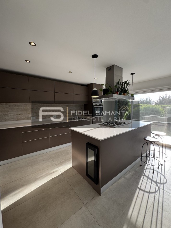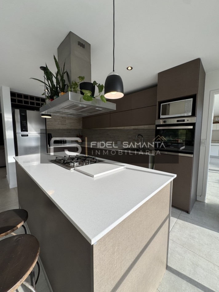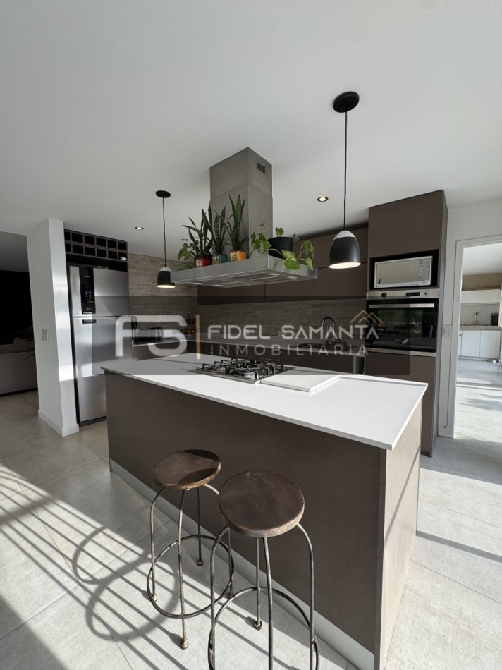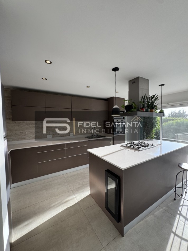 Al ingresar, cuenta con un amplio living comedor con grandes ventanales y vista abierta al jardín, generando una excelente conexión entre interior y exterior. La cocina se encuentra totalmente integrada, equipada con isla, aportando amplitud, funcionalidad y un diseño contemporáneo.