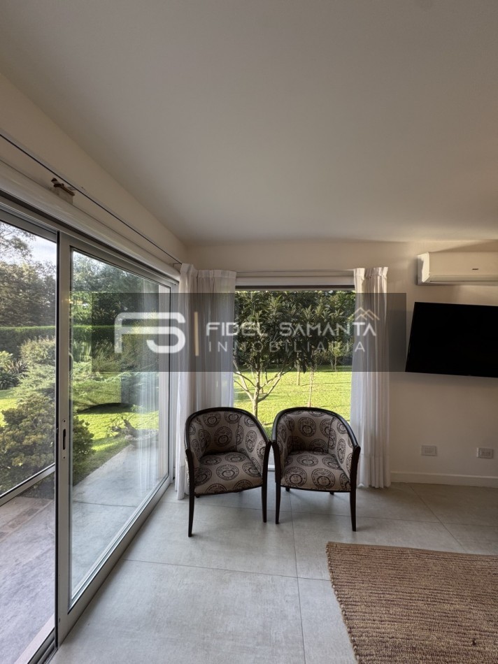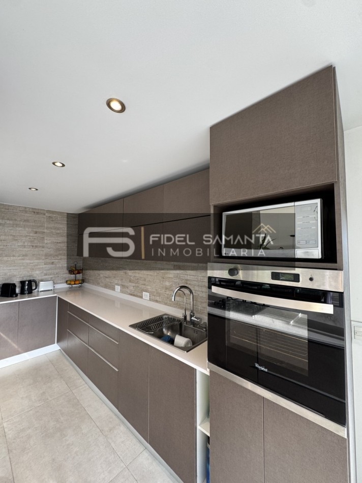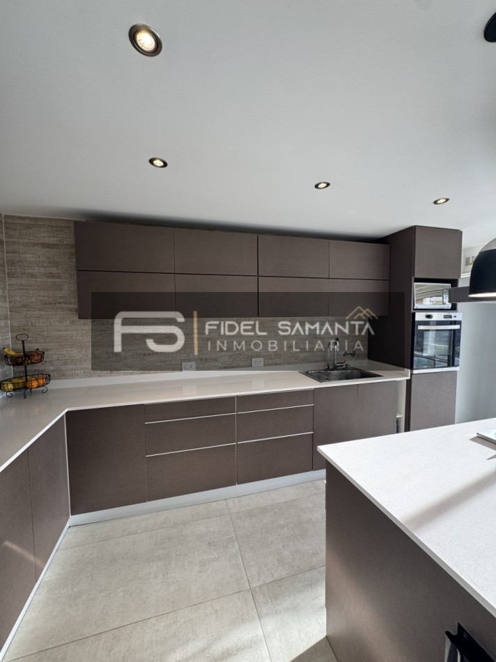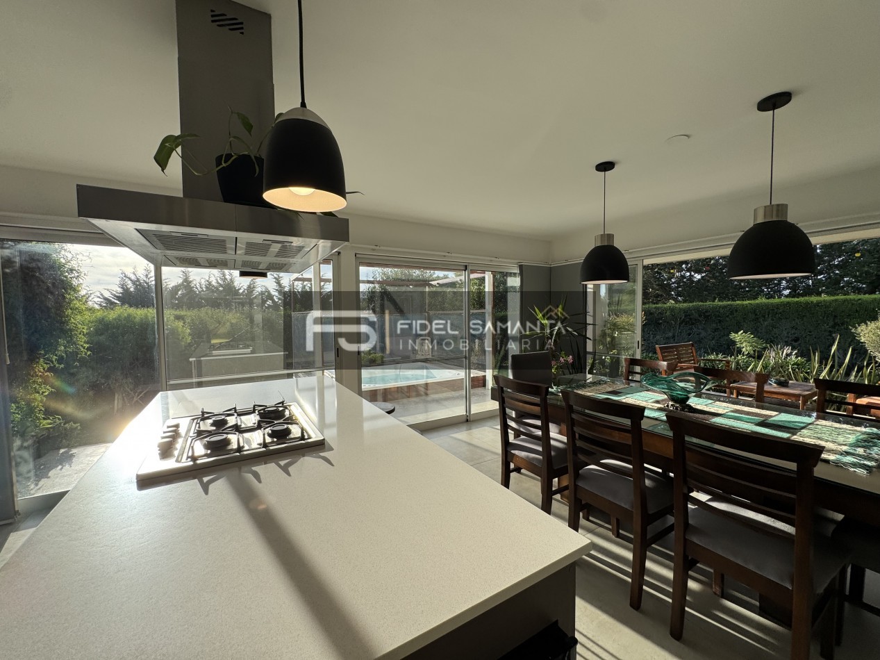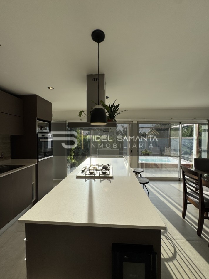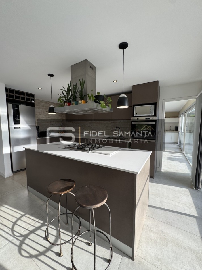 Al ingresar, cuenta con un amplio living comedor con grandes ventanales y vista abierta al jardín, generando una excelente conexión entre interior y exterior. La cocina se encuentra totalmente integrada, equipada con isla, aportando amplitud, funcionalidad y un diseño contemporáneo.