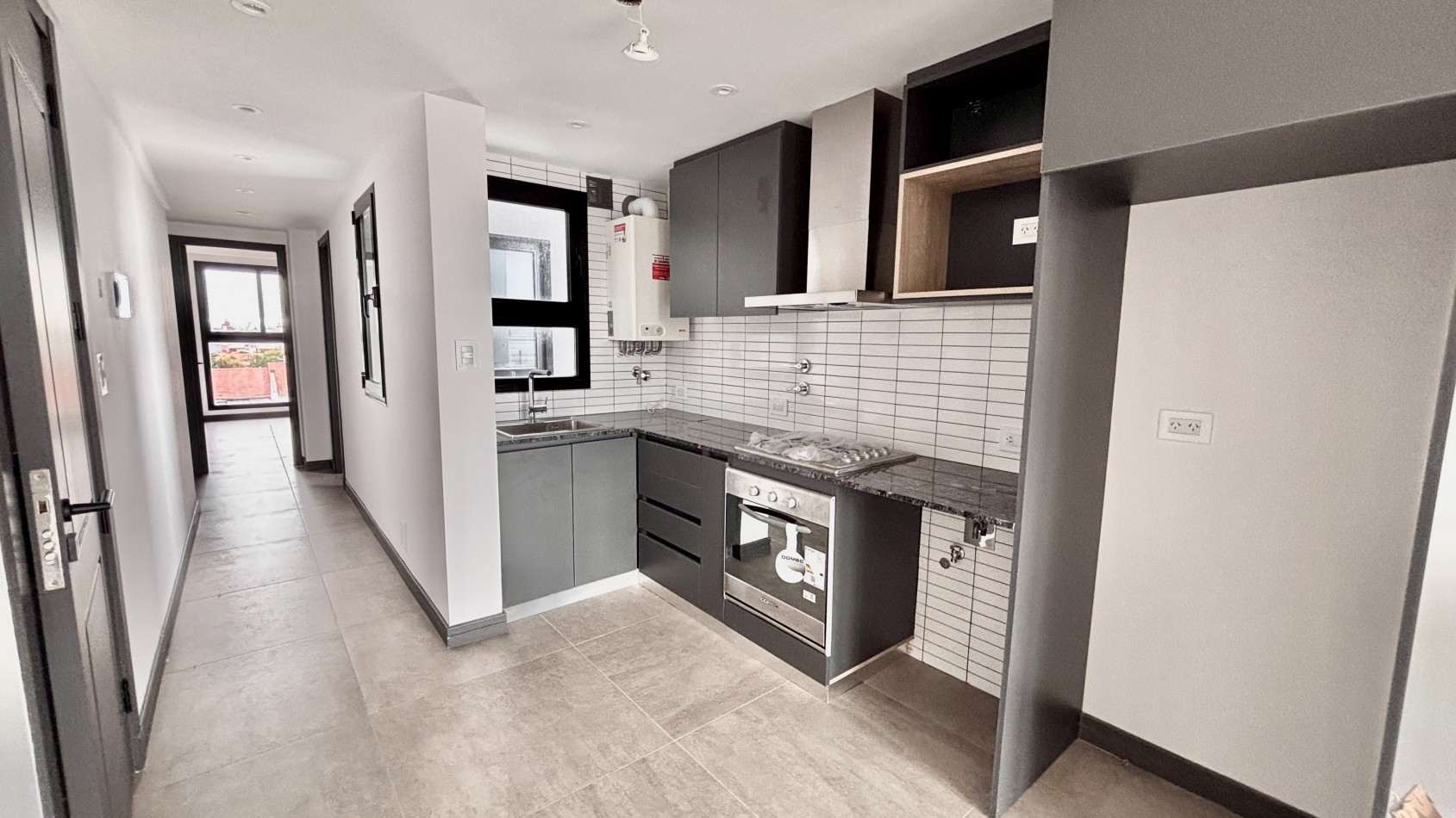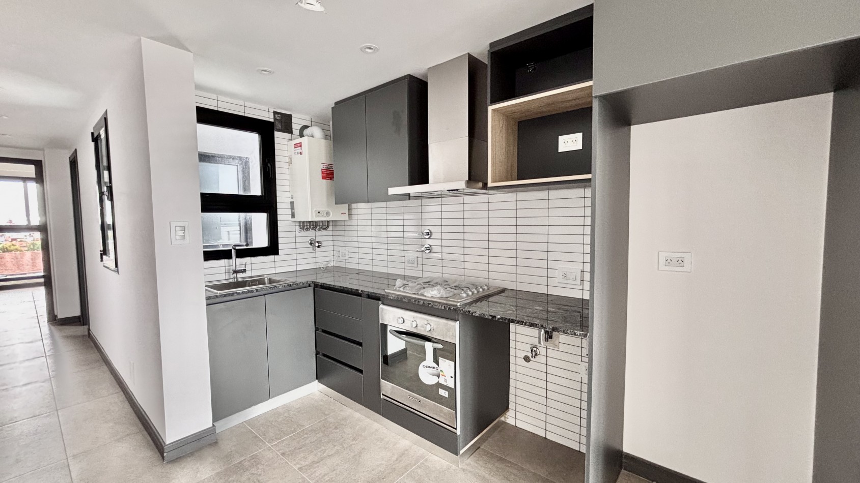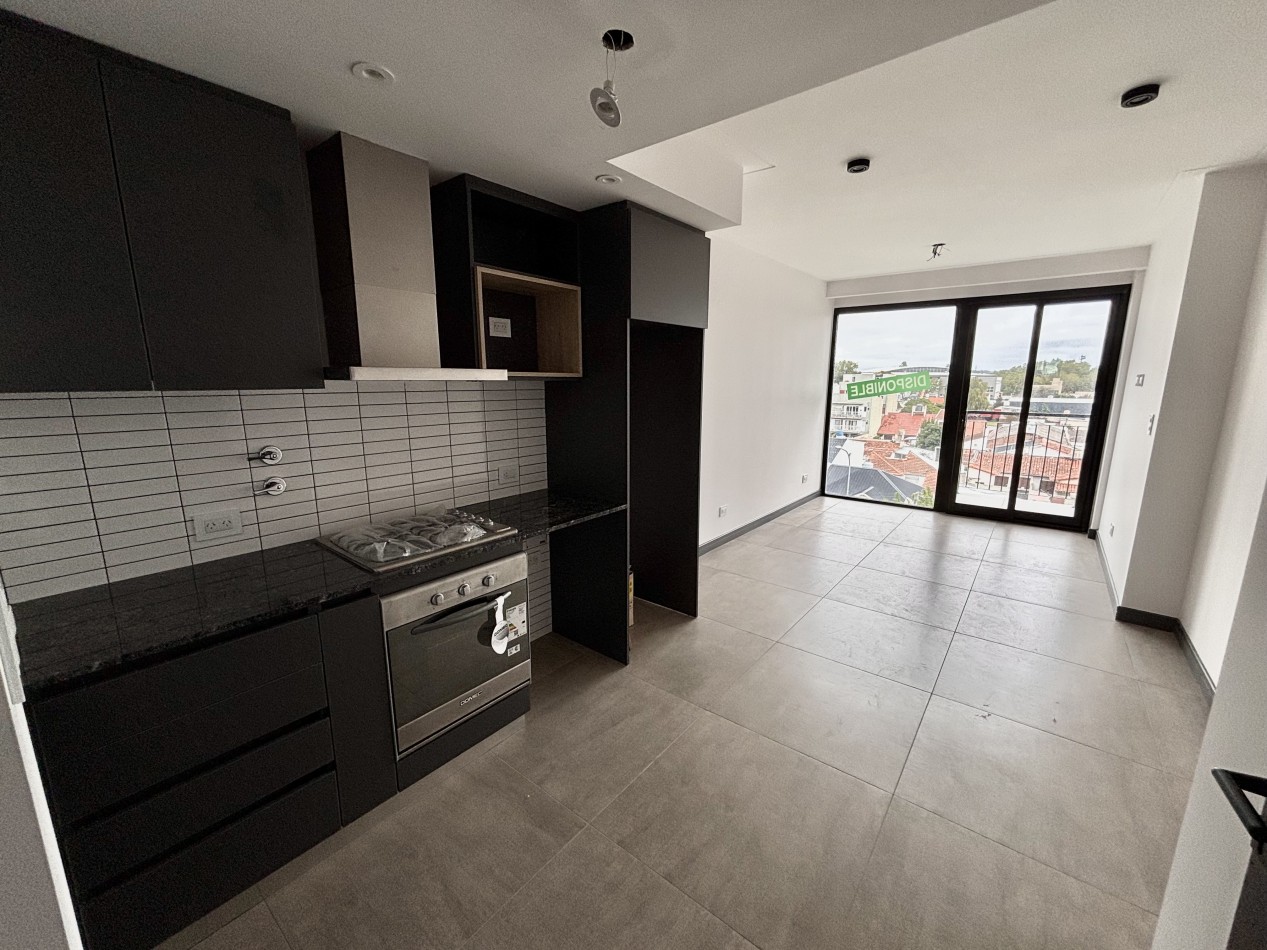 La unidad cuenta con living comedor luminoso con salida a balcón al frente, cocina integrada con mobiliario a medida, dormitorio con placard empotrado y baño completo.