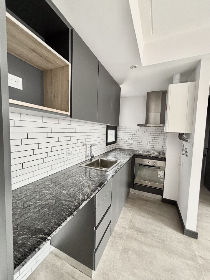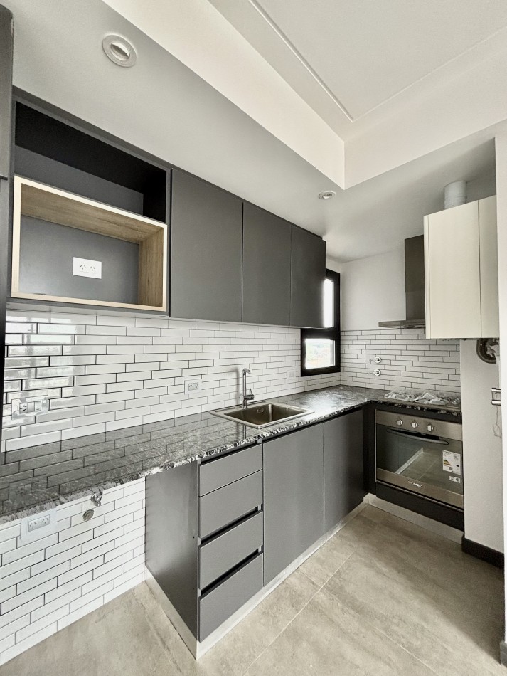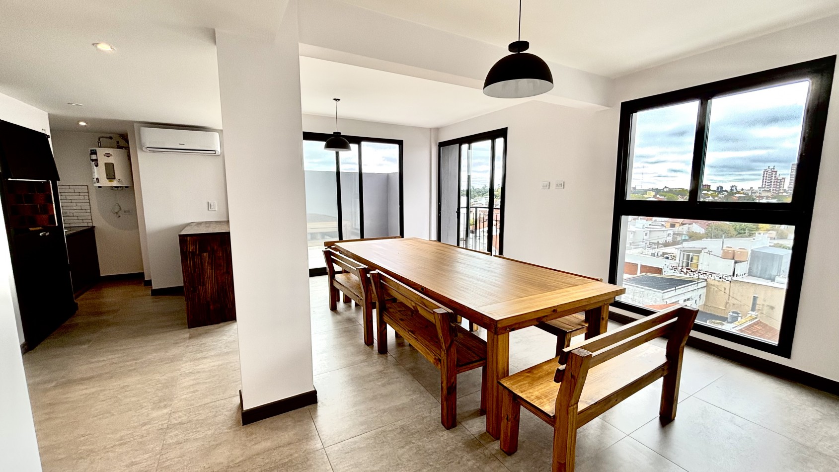 La unidad cuenta con un amplio living comedor con salida a balcón saliente a la calle, lo que garantiza una gran entrada de luz natural durante todo el día. La cocina se encuentra integrada, equipada con mobiliario a medida y terminaciones de primera calidad.