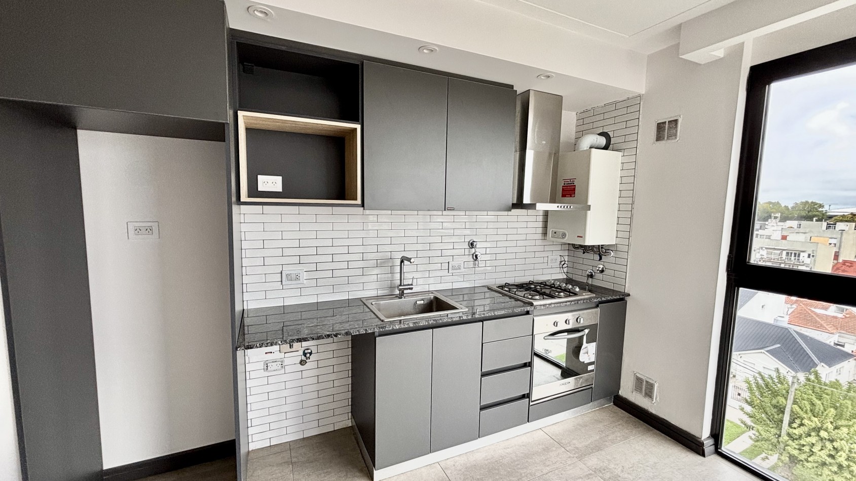 El edificio se destaca por su diseño contemporáneo y materiales de primera calidad: aberturas con doble vidriado hermético (DVH), pisos porcelánicos, calefacción por losa radiante y espacios comunes pensados para el disfrute, como SUM y quincho con parrilla.