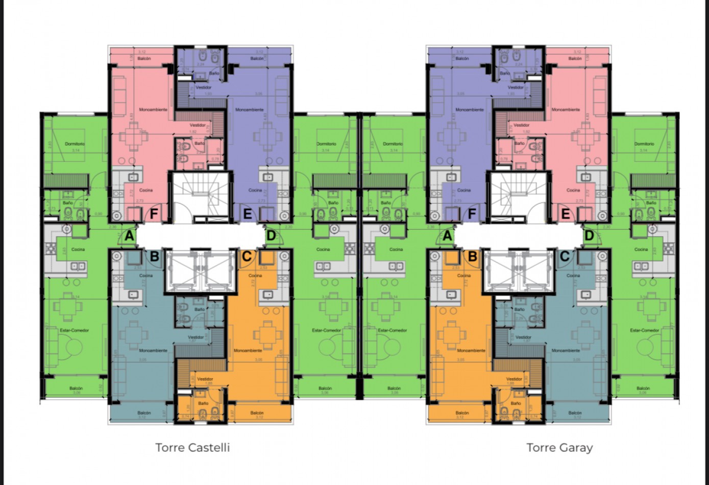 El edificio se desarrolla en dos torres (Torre Castelli y Torre Garay) y ofrece distintas tipologías de unidades, entre ellas las identificadas como 6° “B” y 7° “B”, según torre correspondiente.