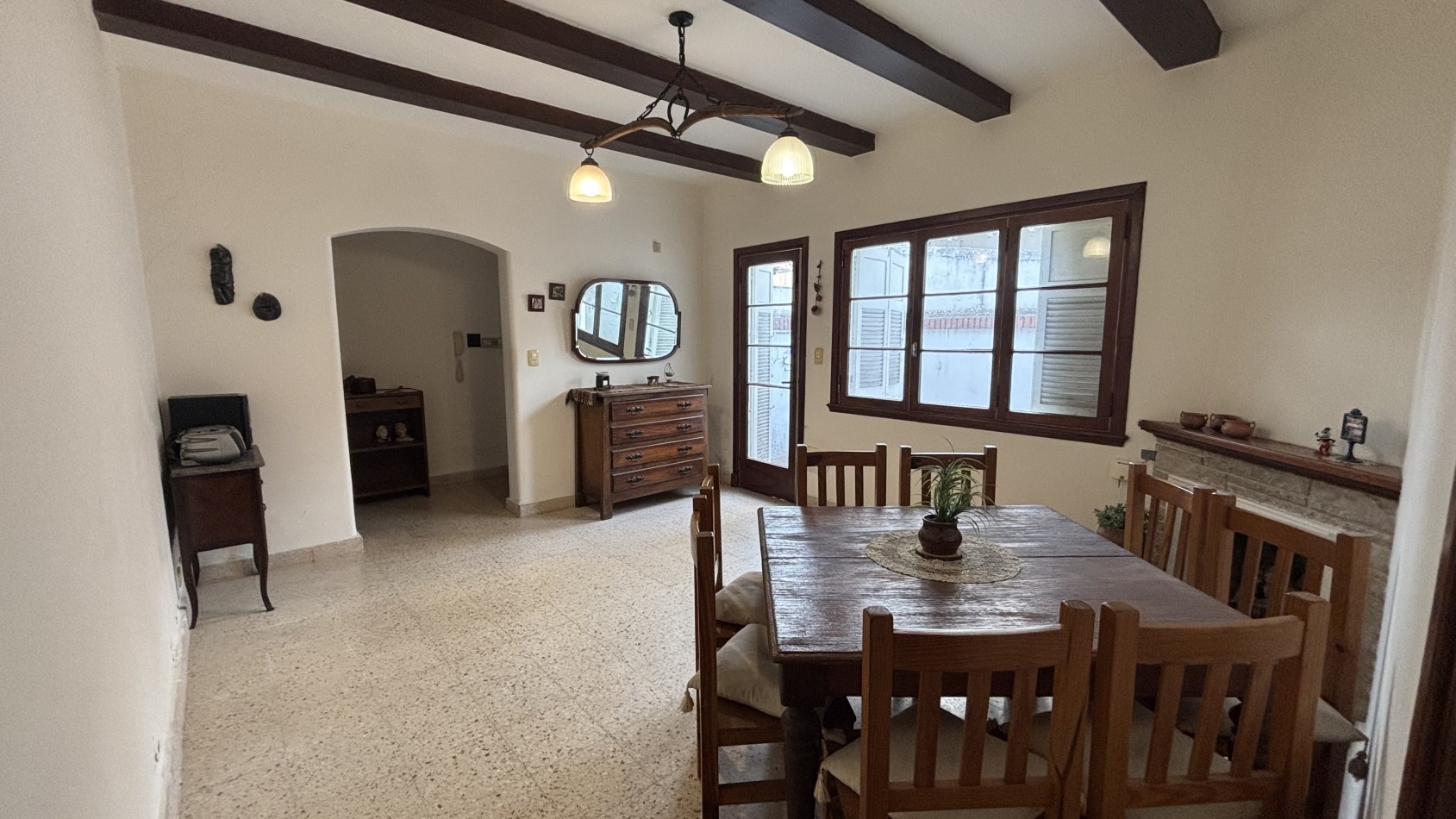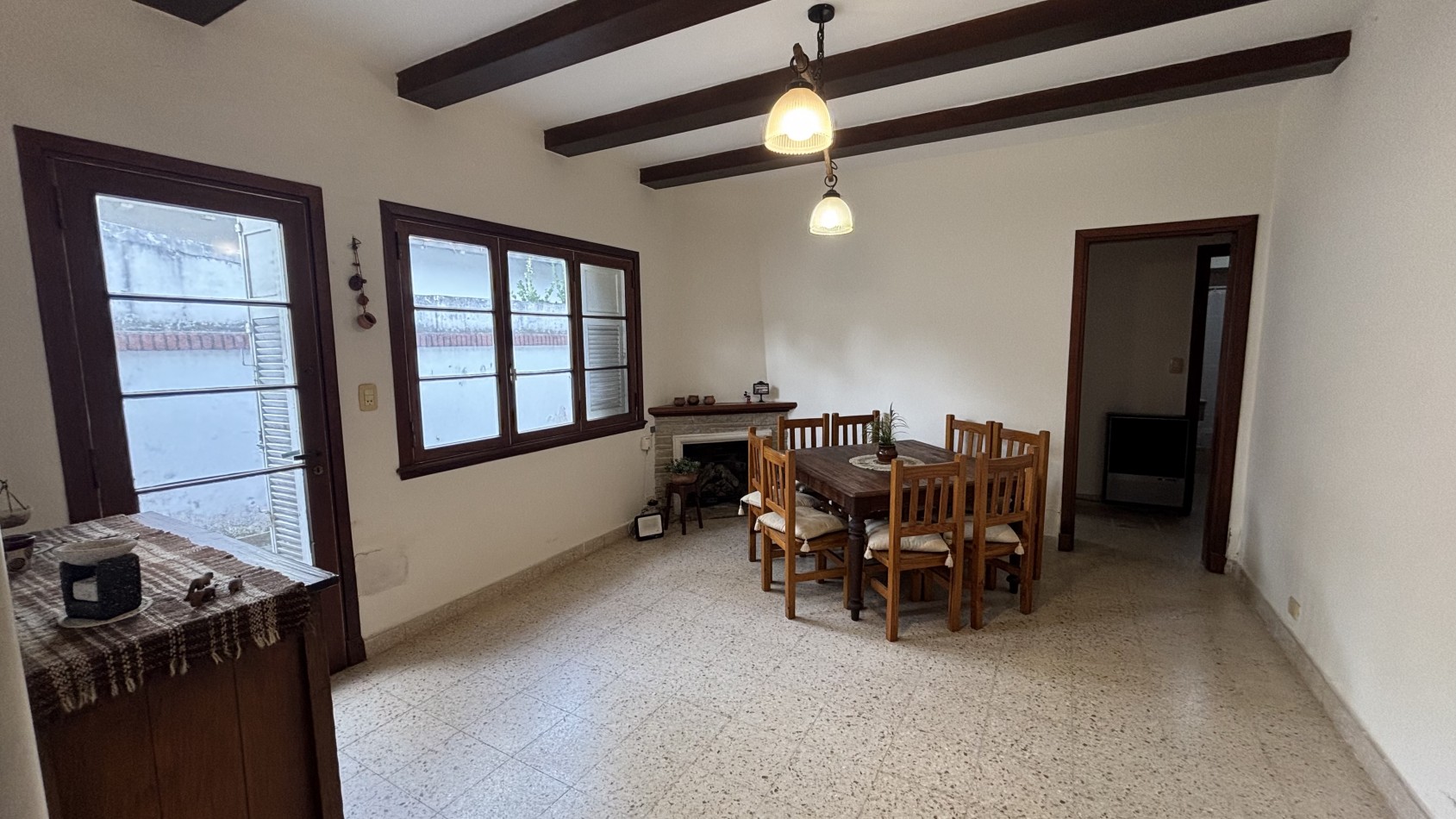 La propiedad se desarrolla en una sola planta y cuenta con un living central que conecta con el pasillo de distribución hacia los dormitorios. Dispone de dos habitaciones con placard, baño completo con bañera y toilette de recepción.